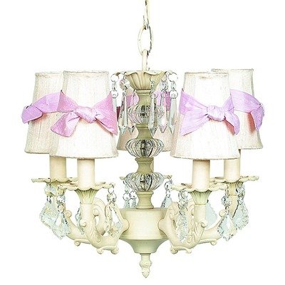 Today Sale ... Cheap Price Now! Stacked Glass Ball 3 Light Chandelier with Plain Ivory Shade / Pink Sash !!!