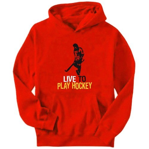 >.< Live To Play Hockey Sports Mens Hoodie (Red, Size Large) @Sale Price